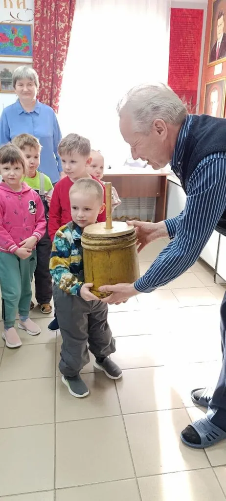 Никифоров Славик приготовил подарок музею – маслобойку, которая принадлежала автору-изготовителю, прапрапрадеду Бабачкову Семену Ефимовичу, жителю д.Орловка Большеуковского района. Позже маслобойкой пользовались предки Славы – Храпочук Ольга Семеновна, Рейтер Валентина Ивановна, Никифорова Ирина Викторовна. Сотрудники музея от всей души благодарят мальчика за такой ценный подарок!