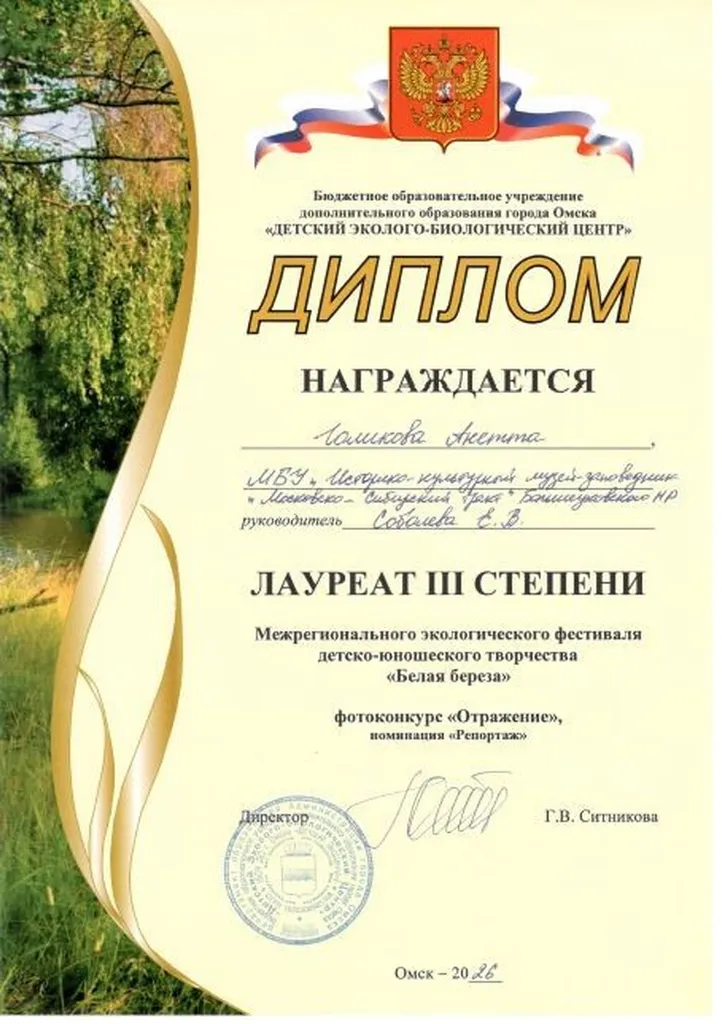 Ребята из детского объединения «Творческая мастерская» (руководитель Е.В.Соболева) МБУ ИК МЗ «Московско-Сибирский тракт» в марте 2026 г. приняли участие в межрегиональном экологическом фестивале детско-юношеского творчества «Белая береза» в номинации – «Фотоконкурс «Отражение». Фестиваль проводится ежегодно в целях активизации творческих способностей обучающихся, направленных на привлечение их внимания к проблемам охраны окружающей среды, выявление и поощрение одаренных обучающихся.