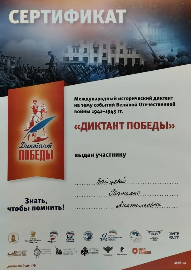 Сотрудники музея приняли участие в патриотической акции - «Диктант Победы». Это мероприятие стало важным шагом к сохранению исторической памяти о Великой Отечественной войне, воспитанию уважения к подвигам предков и формированию гражданской позиции.